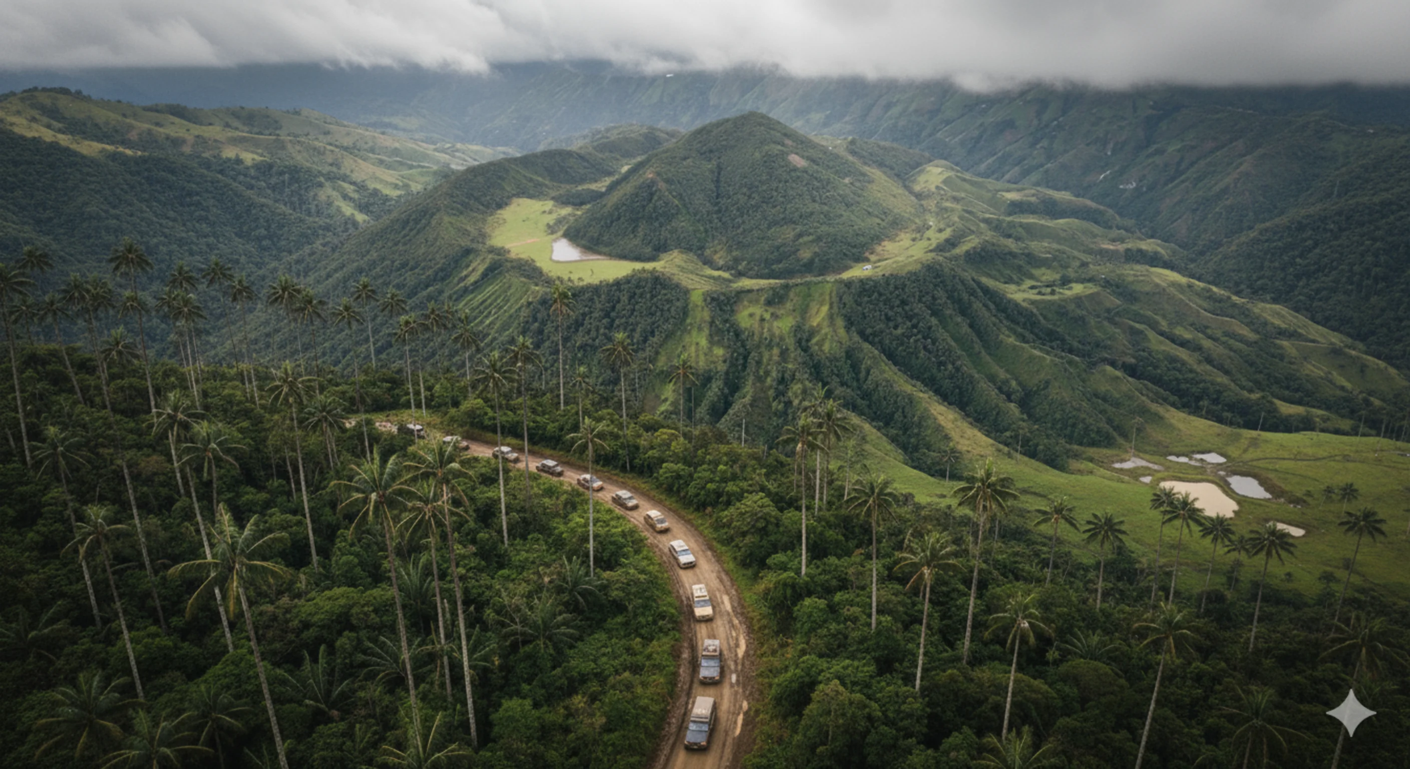 10:30 - 11:30: Parada técnica y fotográfica en miradores del Camino Nacional con vistas panorámicas de la Cordillera Central.